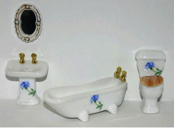 1:24 Ceramic Bathroom Set Blue 4 Piece