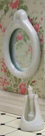 Oval Mirror and Toilet Brush White