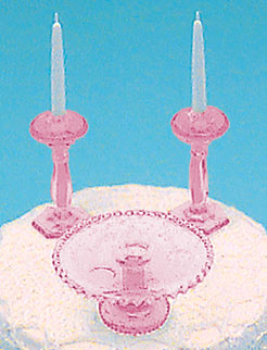 Cake Plate with 2 Candlesticks Pink (Plate 15/16" Diameter X 1/2" H)