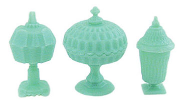 Candy Dishes 3Pc Jadite (Bowl: 15 Diam x 13H, Dish: 12 Diam x 13H, Glass: 8 Diam x 13Hmm (without lids))