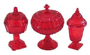 Candy Dishes 3Pc Red (Bowl: 15 Diam x 13H, Dish: 12 Diam x 13H, Glass: 8 Diam x 13Hmm (without lids))
