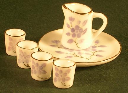 Jug/Tray with 4 Cups Lilac/White (Tray 39 Diam mm)
