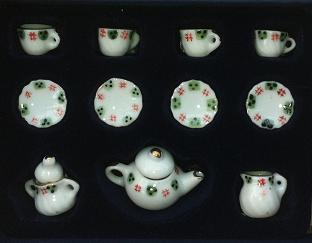 Tea Set 13pc Green/Red Pattern