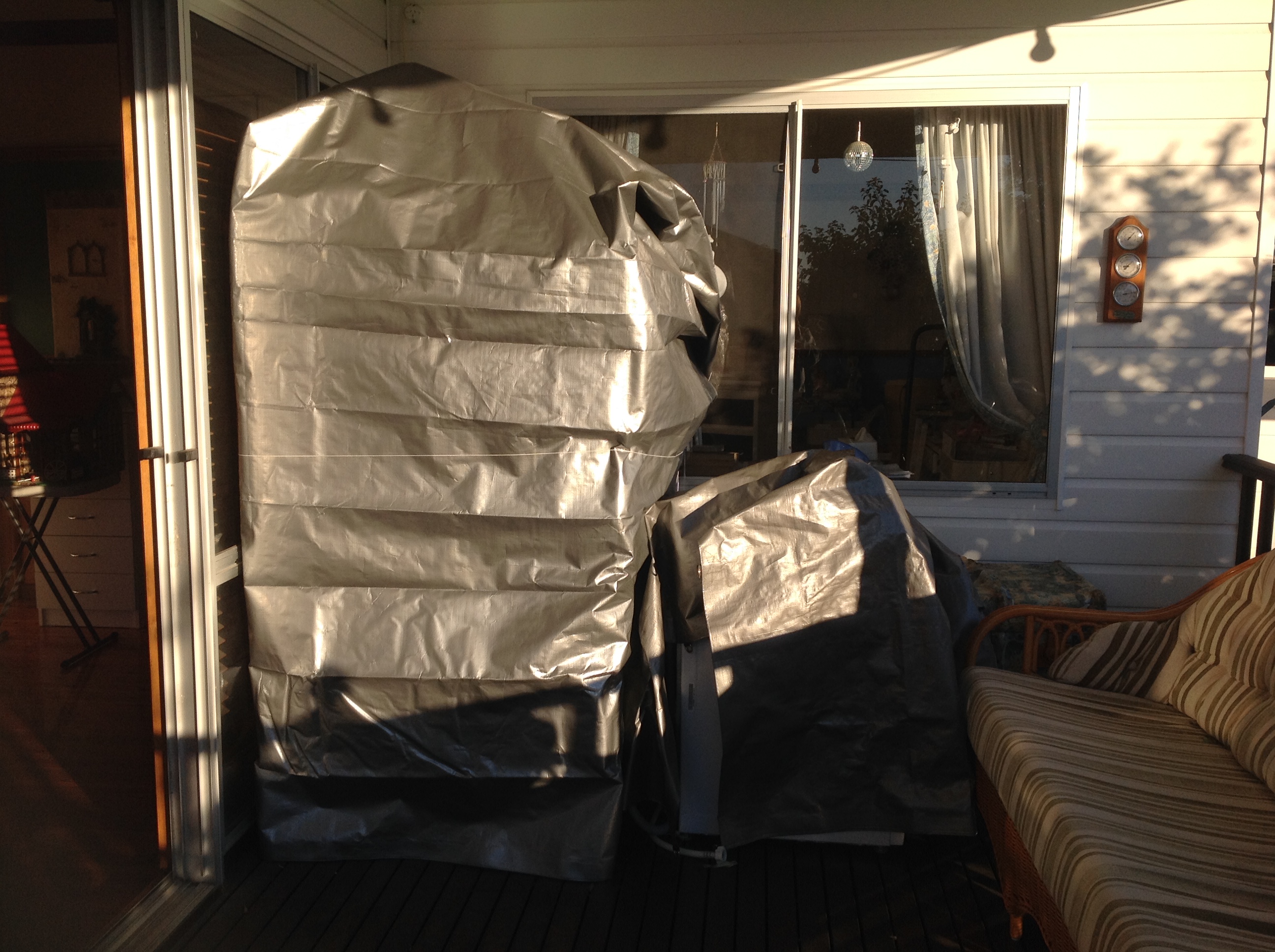 So she came home to live BUT she wouldnt fit through the door and had to live on the back porch until I worked out what to do. There she stayed for over a year under lots of blankets and tarporlines.