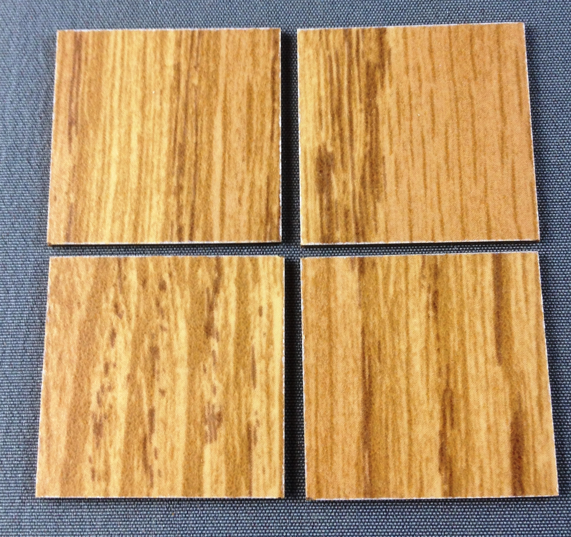 The individual floor tiles are made of Formica and measure 1" square. The contents of the package includes 36 tiles that will cover a 6"x6" area.