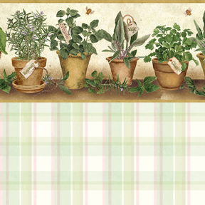 Herb Pots - Green - Plaid Wallpaper (267 X 413mm)