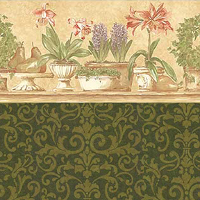 Potted Plants Green - Green Damask Wallpaper (267 X 413mm)