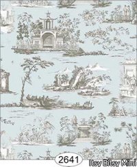 Rose Hill Toile Grey on Aqua Wallpaper (267 X 413mm)