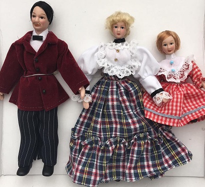 Mother, Father and Girl Family Doll Set in Checked Clothes