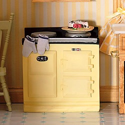 Cream Aga-style stove with two hotplates and two ovens (Polyresin).