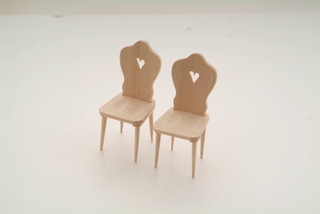 Heart chairs in plain wood finish for varnishing or distressing.