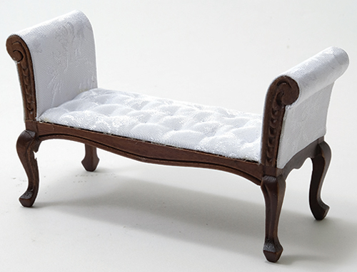 Settee / Sofa Walnut with White Fabric (4 1/2" x 1 3/4" x 2 5/8")