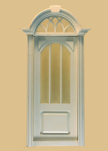 This Dollhouse Cambridge Decorated Single Door 806WO is assembled, painted and ready to install in most standard dollhouse window openings. A finished interior trim piece is provided with each window.