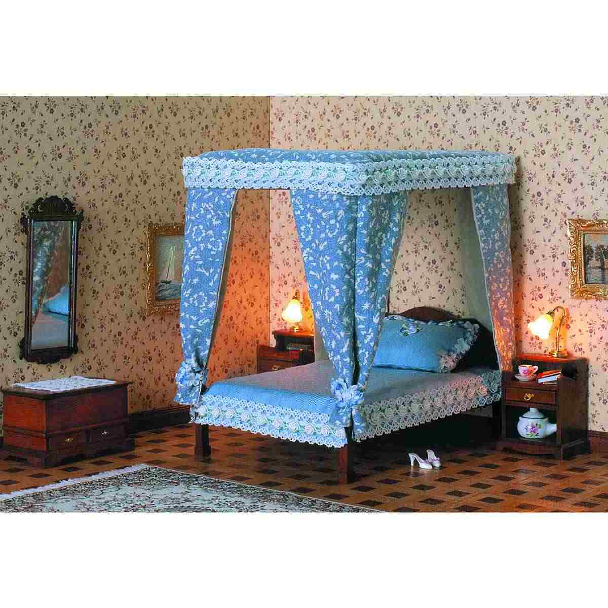 Chippendale Double Bed with Canopy Kit by Mini Mundus (180H x 130W x 170Dmm)